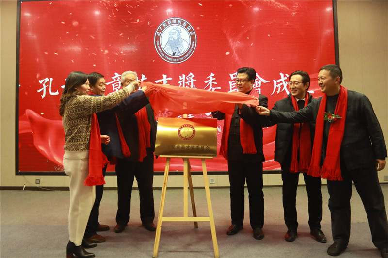 在与会人员的热烈掌声中,出席大会的领导同志共同为孔子奖章英才奖委员会揭牌。
