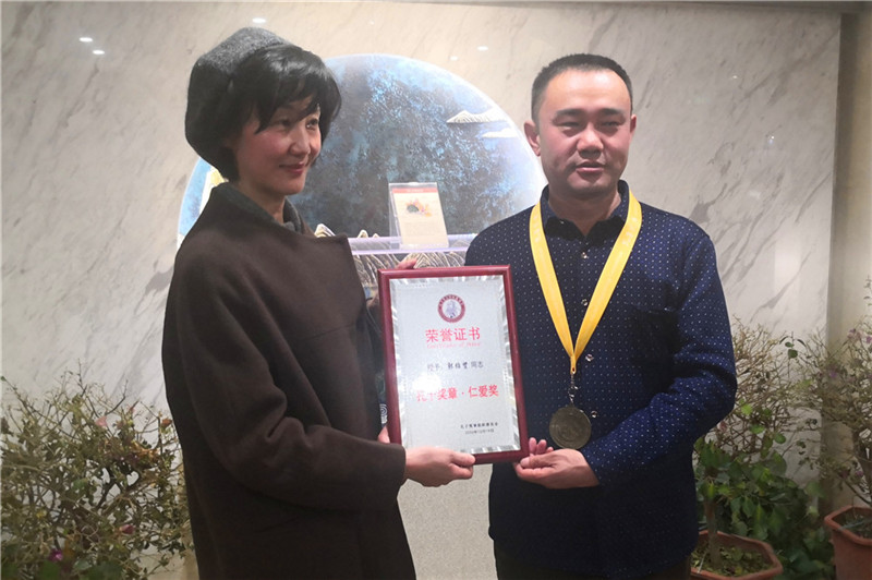 20日晚,孔子奖章组织委员会大授予官王淑良、张婥在北京向郭绍贤颁发了奖章和证书。