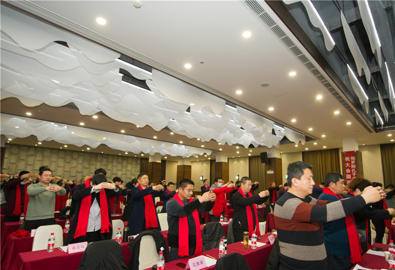 “千年礼乐归东鲁,万古衣冠拜素王。”为致敬孔子,致敬历代先哲,致敬伟大的中国优秀传统文化,全体与会者面对孔子像行三鞠躬礼。