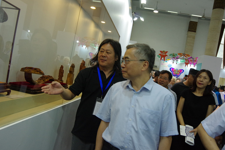 文化和旅游部部长雒树刚、文化和旅游部副部长项兆伦等领导同志先后到曲阜楷木雕刻展位前驻足观看,并向褚德胜询问楷木雕刻传承与发展的现状。褚德胜在现场还为传统文化爱好者作了楷木雕刻技艺展演,其精湛的技艺得到了现场专家和观众的啧啧称叹。