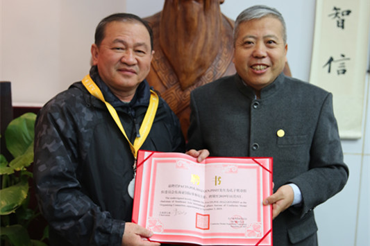 近期,孔子奖章组织委员会在北京什刹海孔子学堂举行仪式,授予泰国平域上将孔子奖章•国际友谊奖。孔子奖章组织委员会主席团主席李长明为平域上将佩戴奖章,并向其颁发荣誉证书。