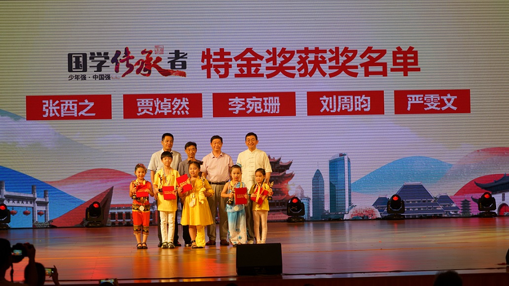 经过近六个月在全国100多个城市海选出来的1000名少年,在湖北武汉参加中国少儿国学大赛总决选,最终5名儿童脱颖而出摘得桂冠,他们分别是张酉之、贾焯然、李宛珊、刘周昀、严雯文。孔子奖章组织委员会授予5名特金奖选手“孔子奖章•英才奖”,是为了表彰他们在学习和传播中华优秀传统文化方面所取得的成绩。