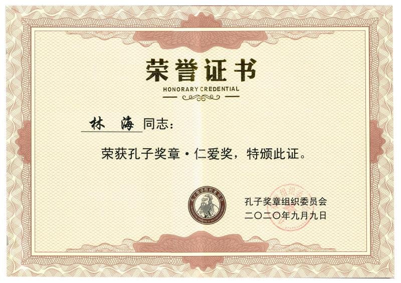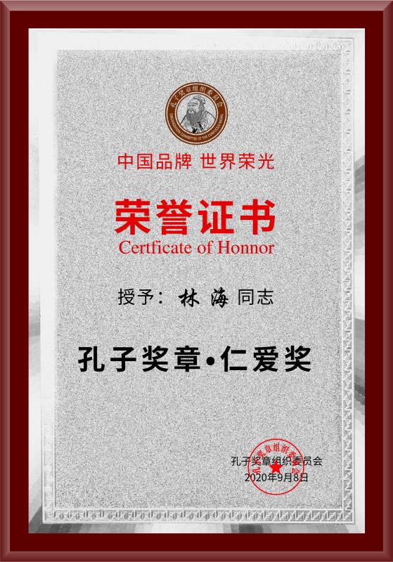 日前,孔子奖章组织委员会在山东曲阜举行仪式,向“孔子奖章·仁爱奖”获得者,中国生命关怀协会健康产业发展工作委员会副主任 、潍坊红阳药业有限公司董事长、山东科微沃环保技术有限公司董事长林海颁发奖章和证书。 在第五届世界朋友节颁奖典礼上,孔子奖章组织委员会授予林海孔子奖章· 仁爱奖。纳米比亚、毛里求斯驻华大使与来自中国、斐济、马来西亚、南部非洲、美国、澳大利亚、加拿大、俄罗斯等国家和地区的世界各地宾朋400余人参加了仪式。 “他曾是一名医生,药剂师,25年前他放弃了医院优厚的工作待遇毅然选择了做企业。他高瞻远瞩,善举善行,脚踏实地。几十年如一日,不忘初心,砥砺前行,时刻满腔热情的践行自己的健康事业与慈善理念,在2020防控疫情中做出了突出贡献!”孔子奖章组织委员会在颁奖词中对林海的社会贡献给予高度评价。 林海先生深耕健康行业二十五年,凭借着努力踏实的态度和对工作的激情,主动承担起社会责任,组织健康志愿者公益行动,帮助弱势群体,提供精准健康扶助,积极投身于各项健康教育和社会公益事业。同时,他实施“高精度次氯酸弱酸性消毒液项目”的课题研究,研发“佰露特”品牌次氯酸消毒系列产品荣获“中国消毒防疫行业领军品牌”;“福博斯”品牌系列消毒产品荣获“中国消毒防疫行业最具影响力品牌”。2020年,林海先生在防控疫情期间积极组织生产高精度次氯酸弱酸性消毒液,爱心援助北京市第十五中学、潍坊市教育局、潍坊市经济区双杨街道刘家村、以及广大社区居民,为抗击疫情奉献自己的一份力量。 多年来,他带头实施国际保健药品和保健食品与中国技术力量合作,将国外先进的ODM技术加工与中草药、食疗、透皮吸收等中国传统技术合作,推广到更新一层的领域,被国家科学技术部列为国家级星火计划项目,并申请了15项国家发明专利及实用新型专利,研发实力达到国际一流水平。林海先生在国内外发表交流学术论文20余篇,荣获山东省科技进步三等奖3项,国家实用新型专利12项,国家发明专利3项;先后荣获潍坊市专业技术拔尖人才,中国健康产业品牌推广影响力人物,中国绿色环保行业创新人物,中国健康产业品牌推广影响力人物,中华少年儿童慈善救助基金会爱心企业企业家,国家中小学生态校园行动工作委员会慈善人物等荣誉奖牌。 孔子奖章是全球以孔子之名设立的最高综合类奖项之一,旨在以榜样的力量推动中国传统文化的传承和弘扬。目的是表彰那些为弘扬与传播中华民族优秀传统文化做出贡献的集体与个人,以此来推动中华经典国学文化在世界范围内的传播,让中国文化更好地融入世界,让世界更好地了解中国文化。