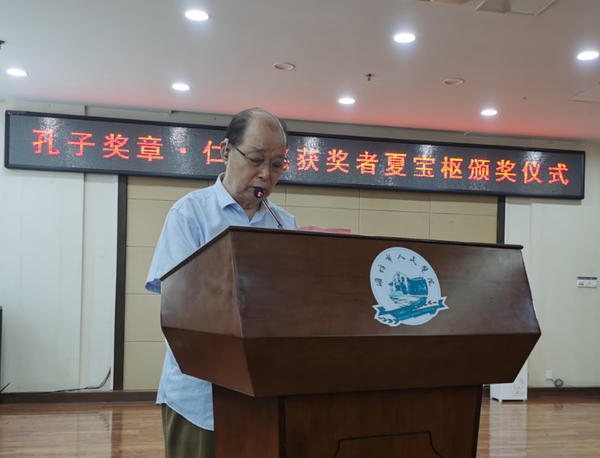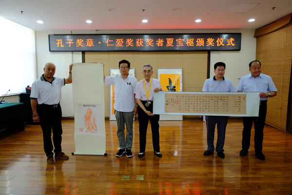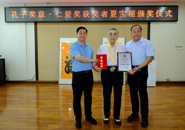 2021年7月23日,孔子奖章组织委员会在山东潍坊举行颁奖仪式,授予潍坊市人民医院原院长、著名医学专家夏宝枢教授“孔子奖章·仁爱奖”。 孔子奖章·仁爱奖是孔子奖章组织委员会为表彰各国践行、传播孔子仁爱精神并取得巨大成绩者,包括但不限于为公益、慈善、教育、各类救助等方面的杰出组织者、优秀领导者和积极参与者,亦是为人类良知的维护者、扶危助难的力行者、社会顽疾的改良者,公共道德捍卫者设立的专门奖项。 今年是夏宝枢教授从医70周年,孔子奖章组织委员会秘书长邢学坤,孔子奖章组织委员会副主席、中国品牌战略发展研究中心主任孙勇向夏宝枢教授颁发“孔子奖章· 仁爱奖”荣誉奖章和证书。潍坊红阳药业有限公司董事长、孔子奖章有朋奖委员会副主席、山东省老年健康委员会秘书长林海宣读颁奖的决定。来自潍坊的“鹤翔十老”,潍坊市人民医院原副院长韩荣芳,中国民族医药开发委员会副会长、山东省政协委员、山东省工商联执委刘希山,潍坊市作协原主席穆陶,潍坊市卫生学校原校长于守信,潍坊市皮肤病防治所原所长郑大有,潍坊市药检所原所长于志超,潍坊市作家协会原副秘书长邓华,潍坊市市立医院医务科主任、泌尿外科主任王杰,潍坊医学院组织学与胚胎学教研室原主任、原中国人民志愿军主治军医卫生队长梁坤义应邀出席颁奖盛典仪式。潍坊医学界的专家、医师、社会各界知名人士参加了仪式。 “您以仁爱之心,肩负起大医天下的使命;您用慈善情怀,挽救了无数脆弱的生灵。九旬高龄,仍耕云种月,传技布道,泛爱博容,惠及苍生;贤达为人,维维高风;桃李芳菲,奉献一生;悬壶济世,敬佑生命。人民的好医生是您至高无上的殊荣!”孔子奖章组织委员会在颁奖词中对夏宝枢的社会贡献给予高度评价。 年过九十岁高龄的夏宝枢教授1956年毕业于青岛市山东大学医学院医疗系本科,毕业后分配山东省潍坊市昌潍专区笫一人民医院(现潍坊市人民医院)放射科工作,1980年加入中国共产党,同年晋升为主任医师。1984年任潍坊市人民医院院长、党委委员等。1978年被选为第五届全国人民代表大会代表和第五届山东省人民代表大会代表。1984年任潍坊市政治协商会议常委、1988年任潍坊市科学技术协会副主席等职。1988~1997年获两届潍坊市专业技术拔尖人材、1992年享受国务院政府特殊津贴。并获山东省劳动模范、潍坊市优秀知识份子等荣誉称号。 夏宝枢教授在国内外发表论文150余篇,并于1992年集代表性著作100篇,出版发行了《夏宝枢教授放射学学术文集》。由夏宝枢主持策划、担任名誉主编、主编、副主编、协编、主审、作序等专业书籍及相关放射史、志等在“人民卫生出版社”、“人民军医出版社”等发行出版著作40余部;同时担任《中华放射学杂志》、《临床放射学杂志》、《实用放射学杂志》、《国外医学放射分册》、《介入放射学杂志》等八本杂志编委、资深编委和顾问等。获科硏奖18项,其中有1978年《地方性氟骨症防治的研究》获全国科学大会奖、1978年《颠簸疗法治疗急性小肠扭转》获卫生部科学大会奖,同年《地方性氟骨症防治的研究》《颠簸疗法治疗急性小肠扭转》以及其后获省、卫生厅、和市科技进步奖多项。2008年中华放射学会授予夏宝枢“杰出贡献奖” 。 夏宝枢教授多年来曾先后担任全国、省、市各级学术团体正、副主任委员或正、副理事长;委员、理事等10多项职务; 1983年以客座教授于美国纽约州立大学下州医学中心硏修介入放射学1年,回国后大力在国内推广介入放射学,并于1986年在潍坊召开首届全国介入放射学学术大会,对推动我国介入诊治起引领作用。还曾受聘国内数所大学教授、客座教授和兼职教授等职。1994年历任两届潍坊市人民医院院长退休。退休后出席国际、全国及省、市学会70余次,撰写有关史料十余部篇,用毕生所获知识智力以飨后人。为中华民族医学事业奉献自己的一份力量。